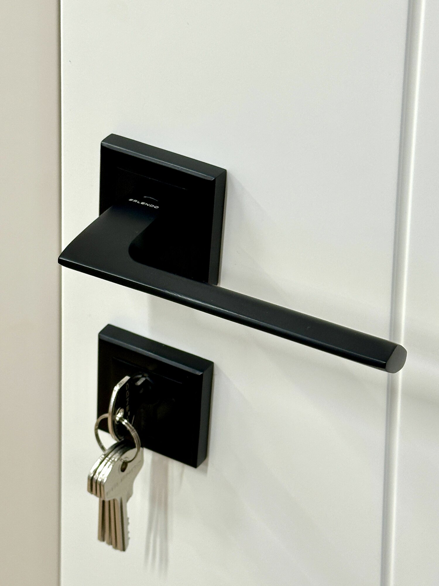 Межкомнатная дверная ручка Salendo SL-03-S BL + Магнитный замок M1885-ET BL + Накладки на личинку замка SL-ET-S BL + Личинка для замка ключ/ключ 60K/K-BL + Дверные петли SL 100X70X2,5-4BB BL _ 2 шт. 3 600 ₽