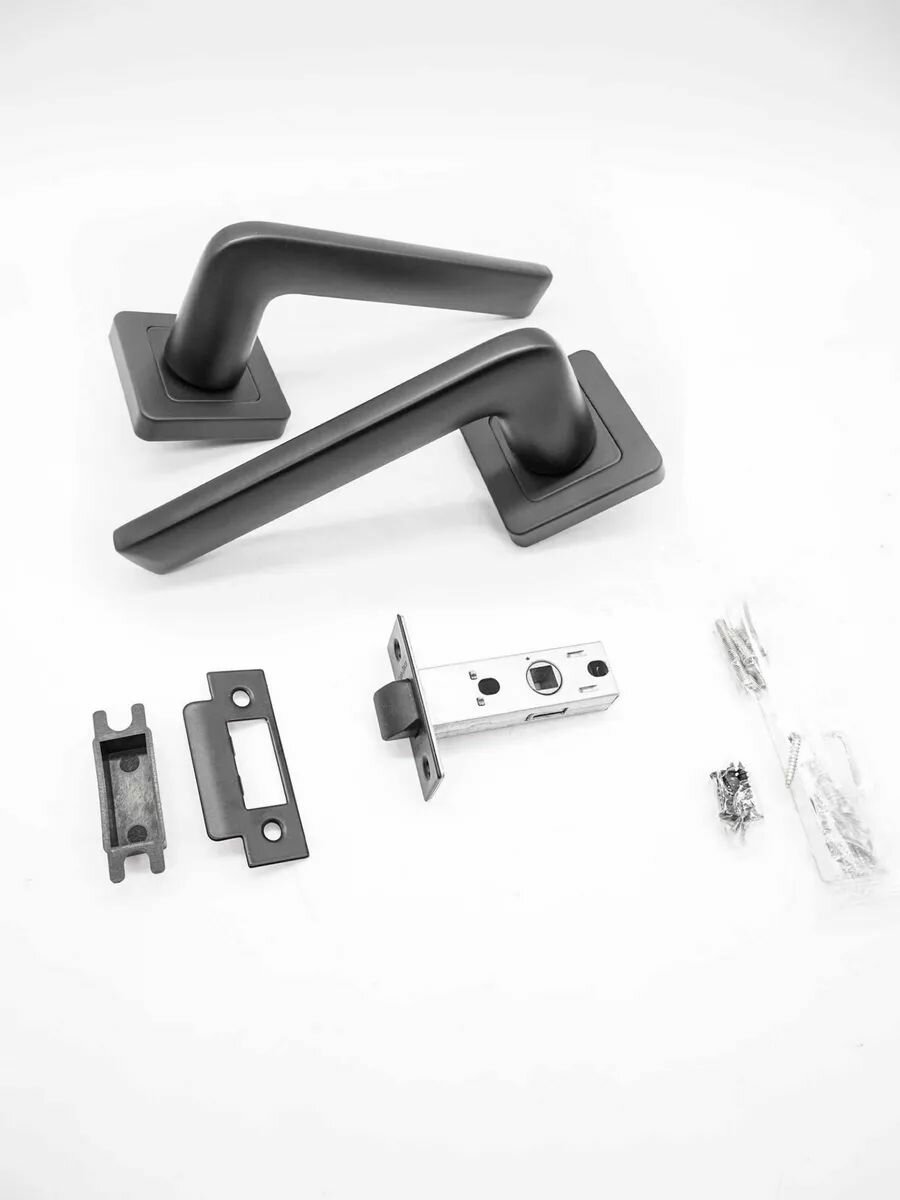 Готовый комплект 4в1 ручка дверная межкомнатная CODE DECO 22112 Графит + защелка без фиксации + петли накладные (2 шт) 1 598 ₽