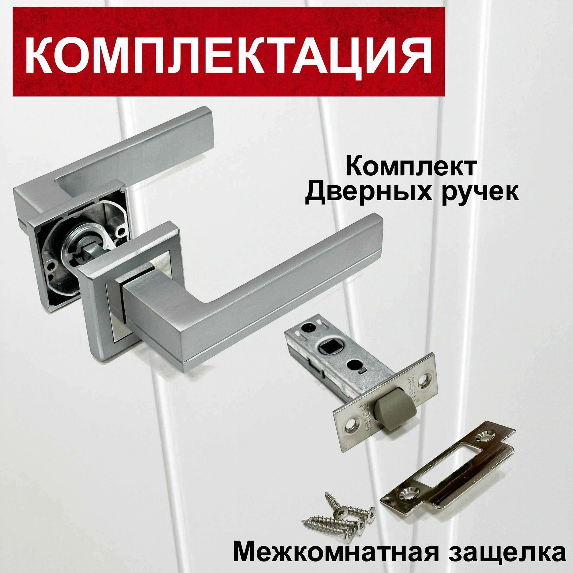 Ручка дверная межкомнатная хром блестящий с защелкой, заверткой и ключами комплект