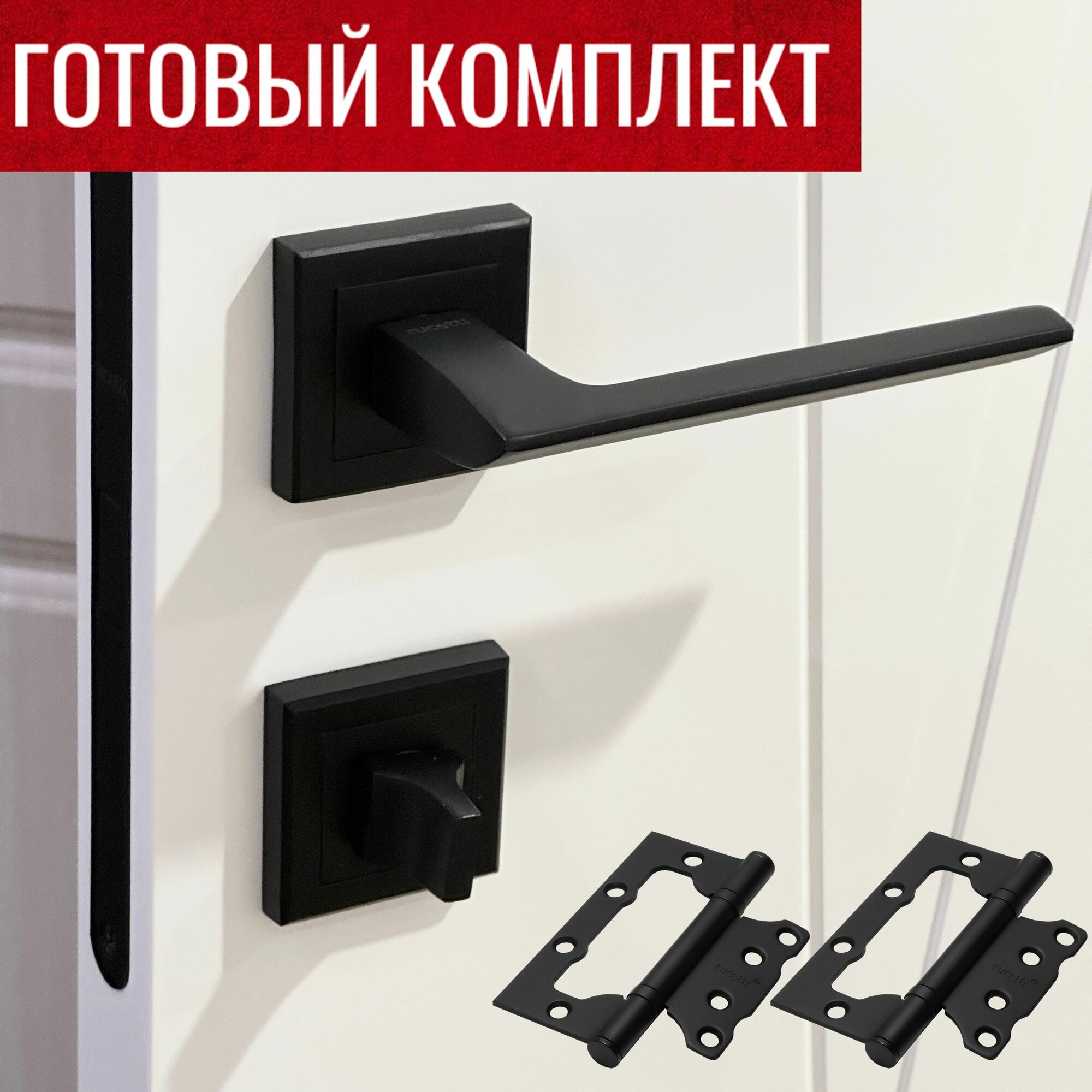 Дверные ручки Rucetti (Ручетти) RAP 21-S BL + Межкомнатный замок RP1895 BL + Завертка сантехническая RAP WC-S BL + Дверные петли без врезки RFH-100*75*2,5 BL - 2 шт. 2 930 ₽