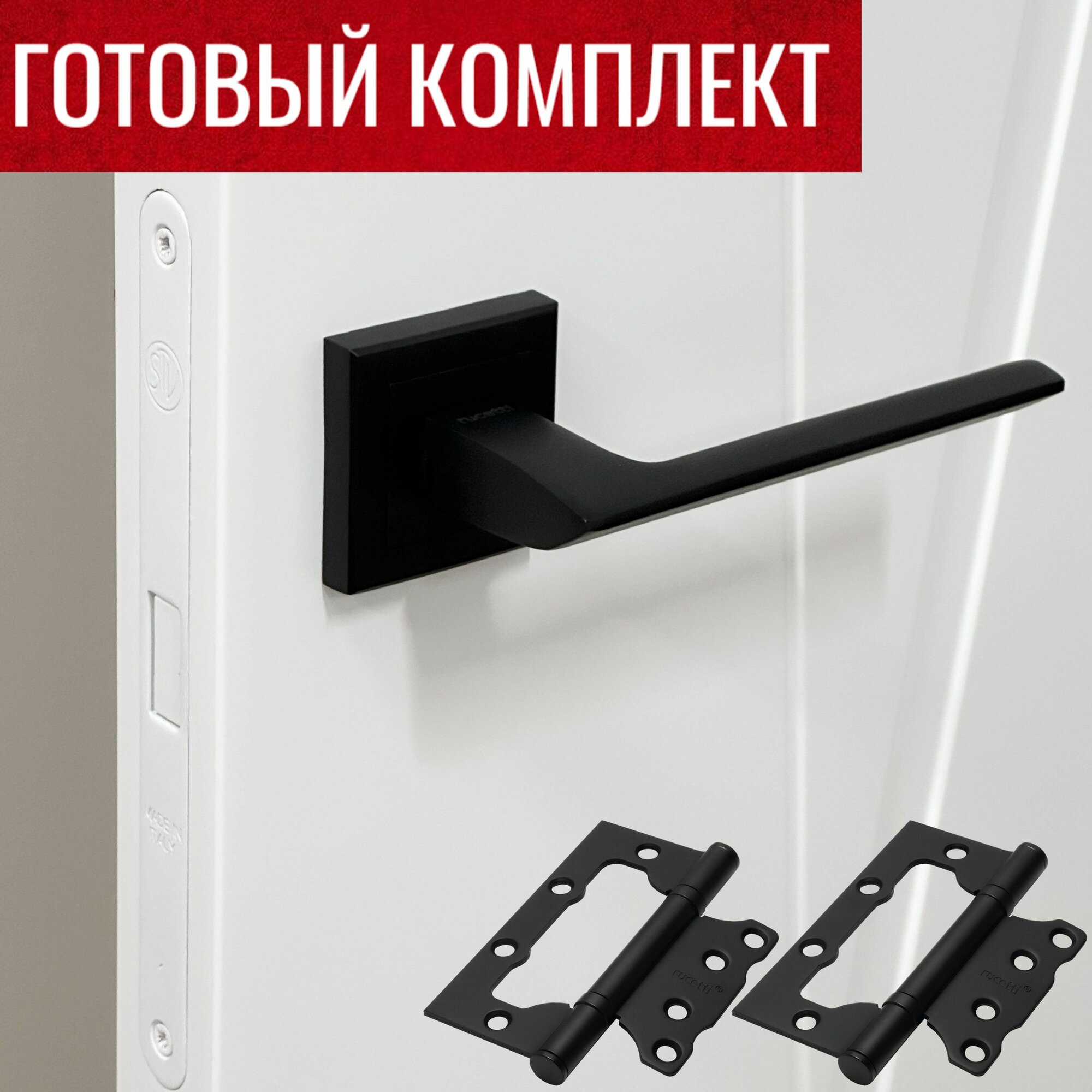 Дверная ручка Rucetti (Ручетти) RAP 21-S BL + Защелка межкомнатная Morelli (Морелли) LP6-45 BL + Дверные петли без врезки RFH-100*75*2,5 BL - 2 шт. 1 850 ₽