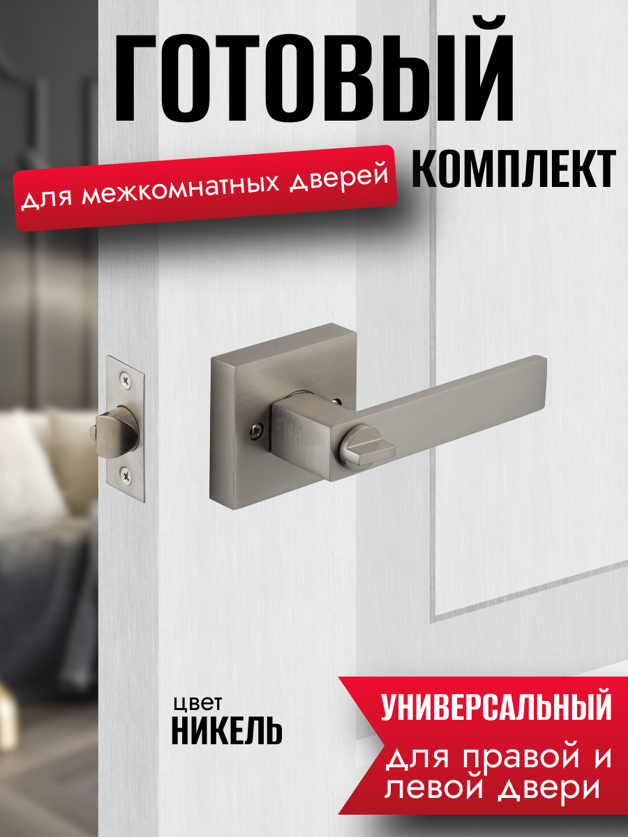Ручка дверная межкомнатная. цвет под никель, с защелкой и заверткой без ключей, комплект информация: