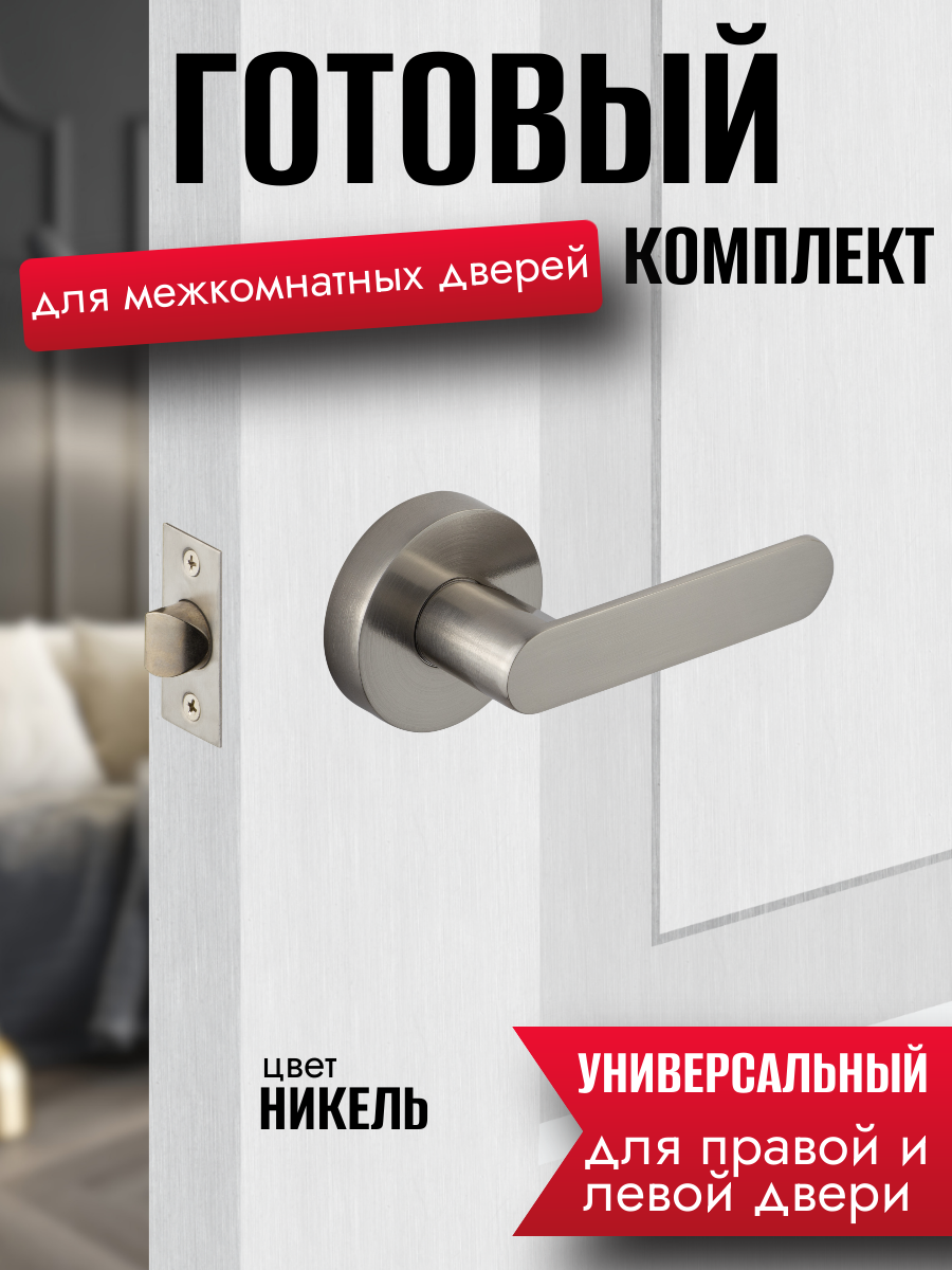 Отзывы на Ручка дверная межкомнатная с защелкой, цвет под никель, круглая розетка, комплект