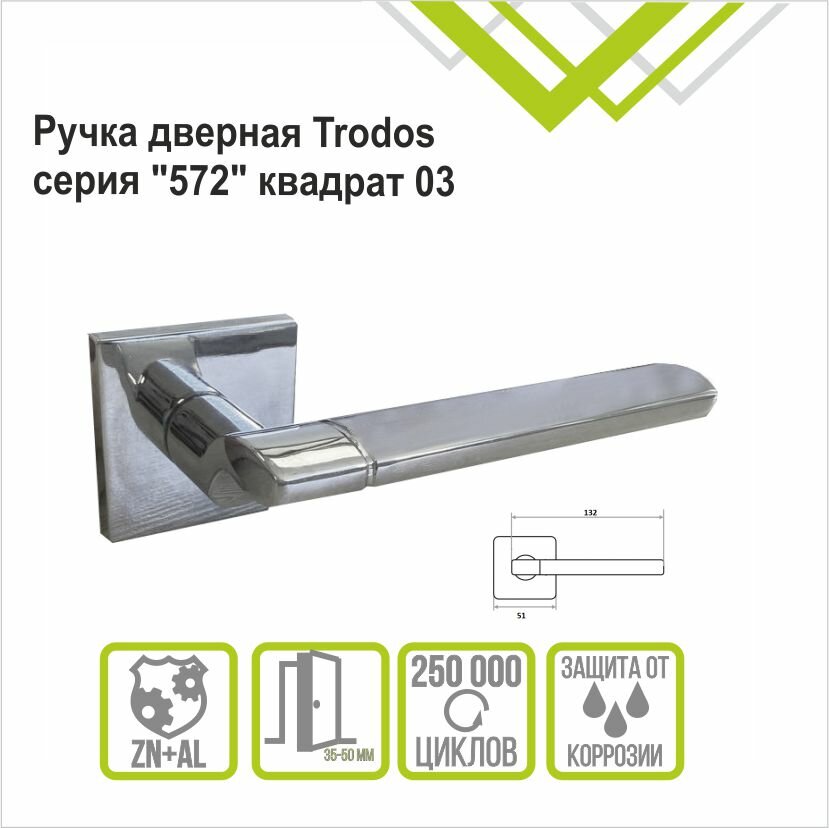 Ручка раздельная для входных и межкомнатных дверей поворотная Trodos "572" квадрат 03, хром, информация: