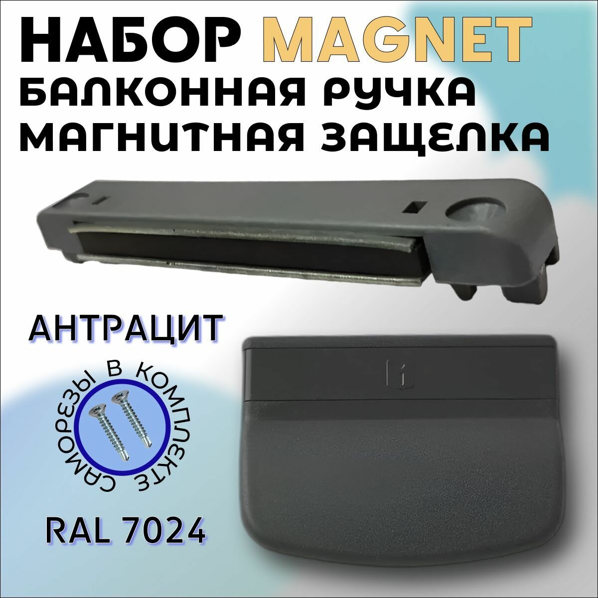 Ручка для балконной двери цвета Антрацит с магнитной защелкой, полный комплект на 1 дверь информация: