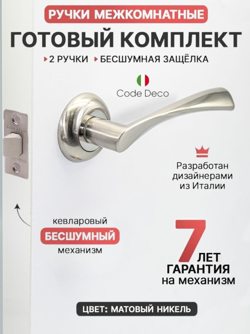 Отзывы на Готовый комплект 2в1 ручка дверная межкомнатная CODE DECO 14023 Никель матовый + защелка без фиксации