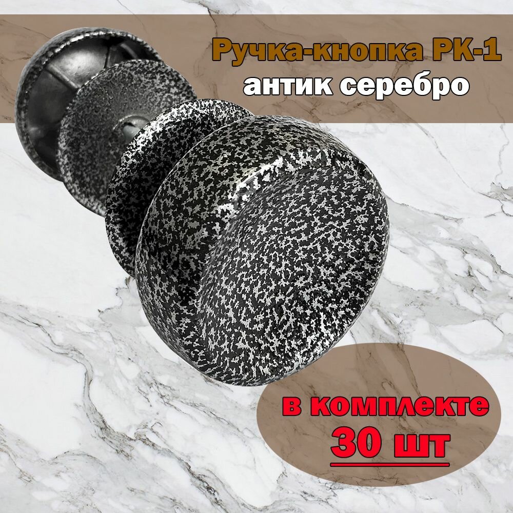 Ручка дверная (комплект 30шт), ручка кнопка цвет античное серебро, фурнитура для дверей информация: