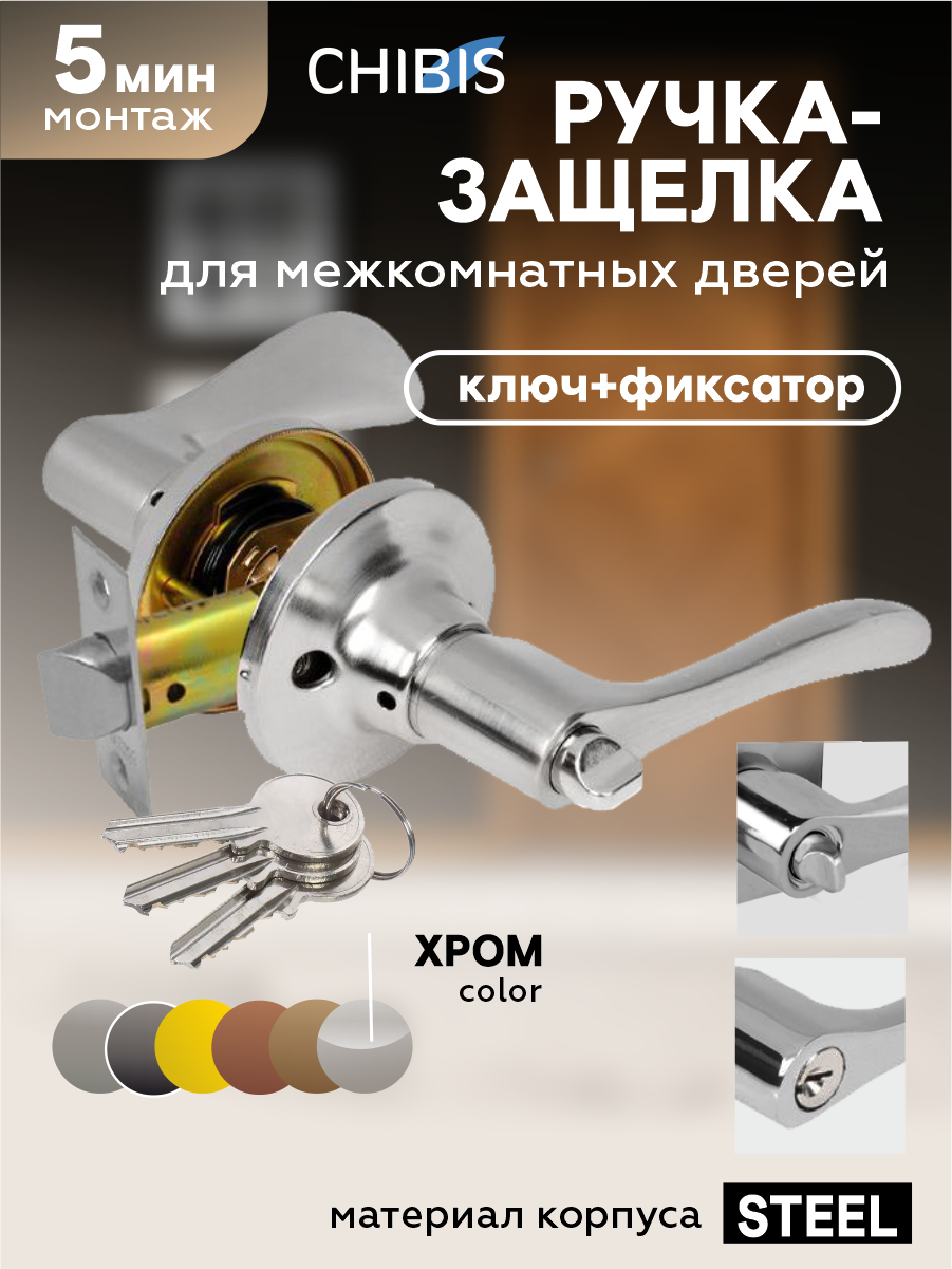 Отзывы на Ручки-защелки дверные/ручка кноб для межкомнатных дверей "чибис" фалевая (хром) с замком и фиксатором