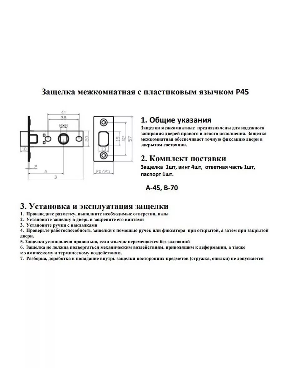 Защелка межкомнатная P45SN матовый никель информация: