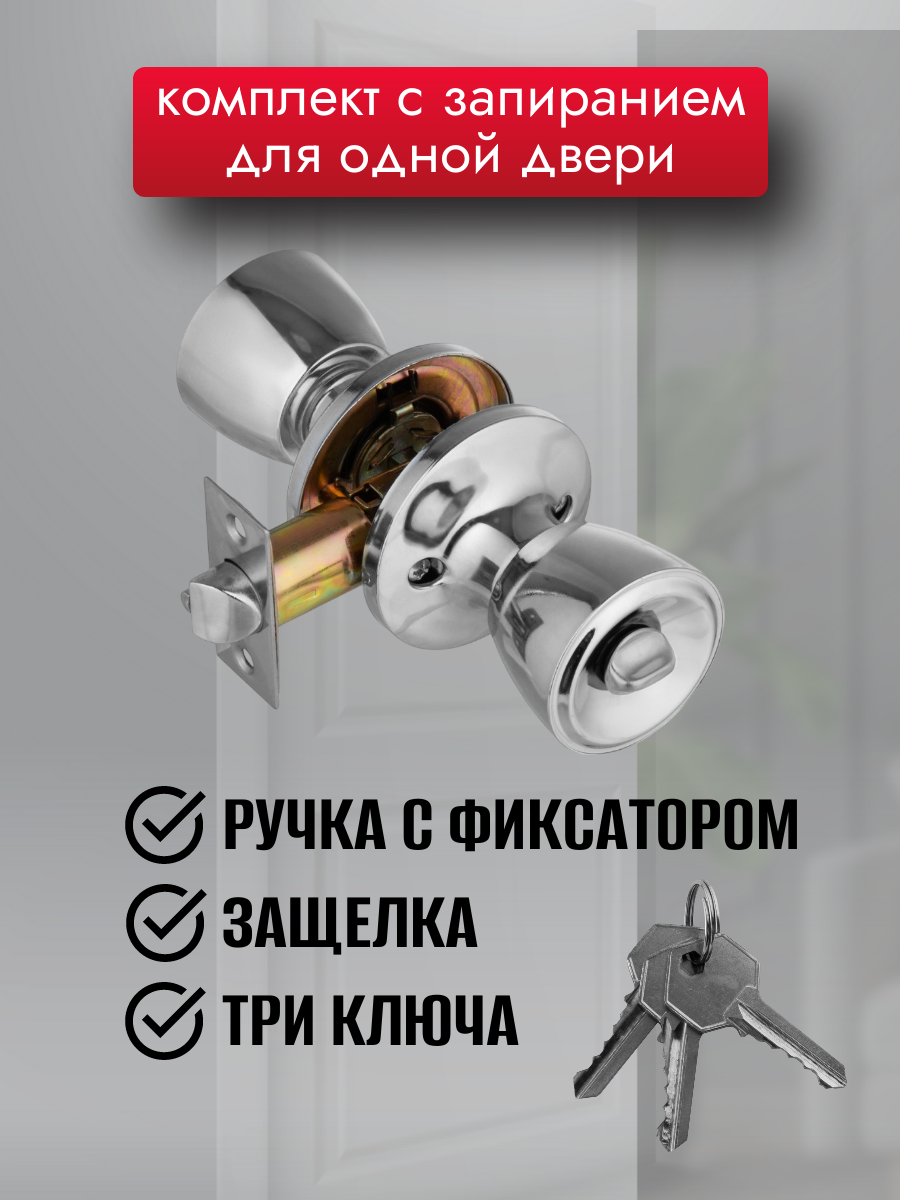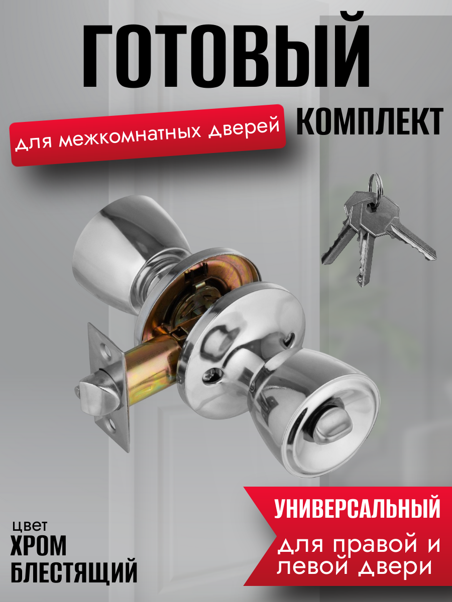 Ручка дверная межкомнатная хром блестящий с защелкой, заверткой и ключами комплект информация: