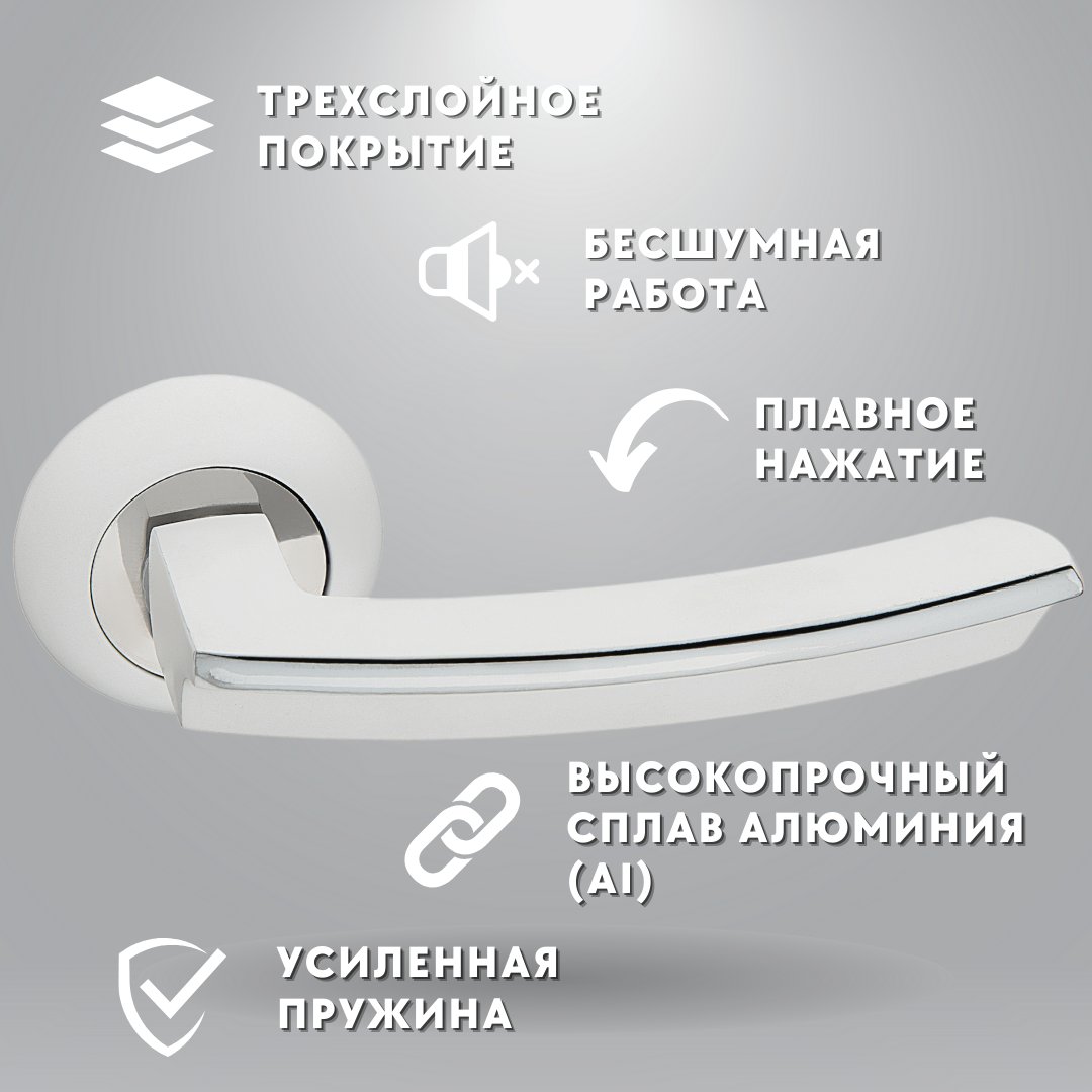 Ручка дверная межкомнатная, белая с хромированной отделкой, комплект информация: