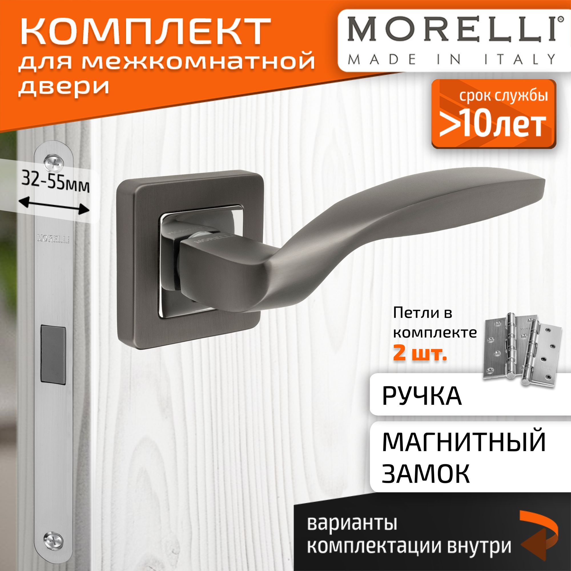 10 цен на Комплект для межкомнатной двери Morelli ручка MH 45 S55 GR/CP + магнитный замок + врезные петли / графит-хром