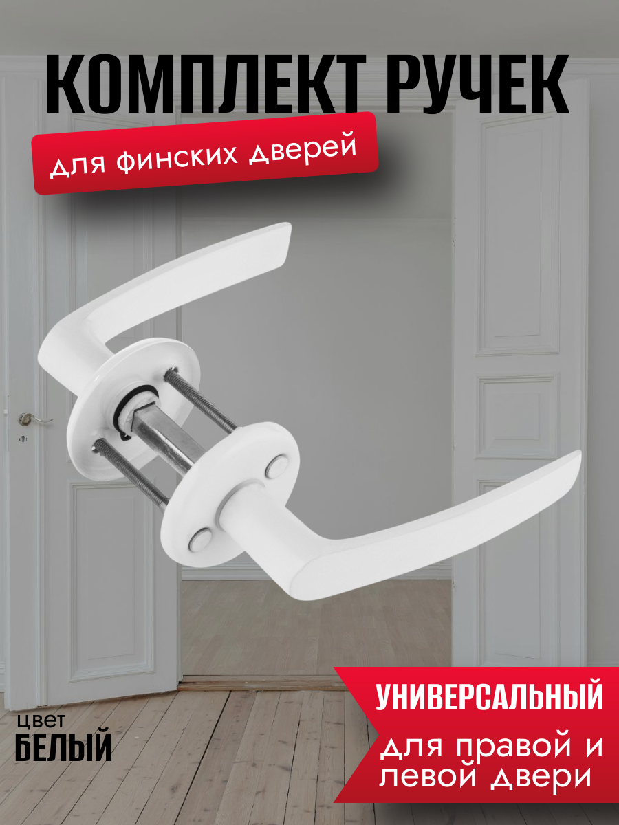 Дверная ручка межкомнатная , цвет белый, круглая розетка, комплект информация:
