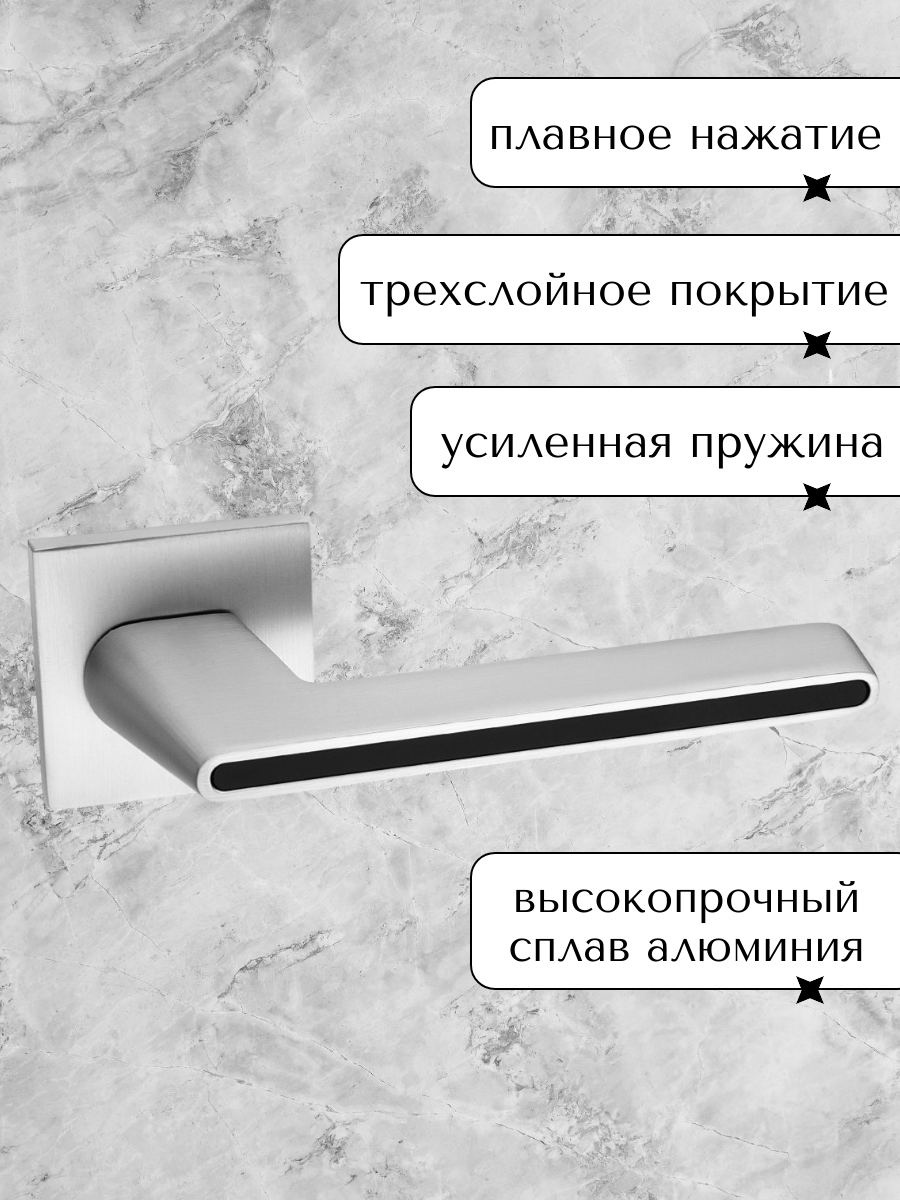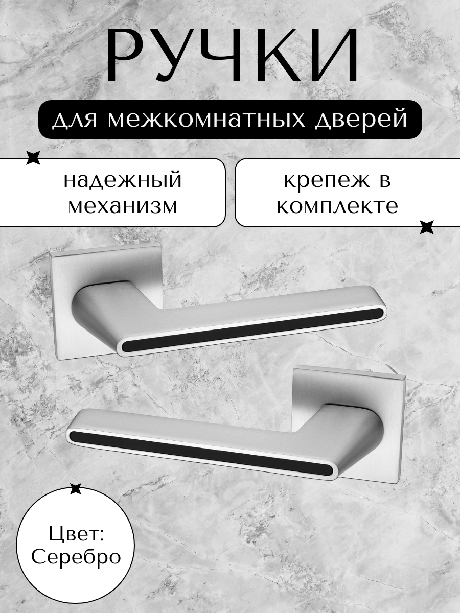 Отзывы на Ручка дверная межкомнатная с черной отделкой, цвет серебро, квадратная, комплект