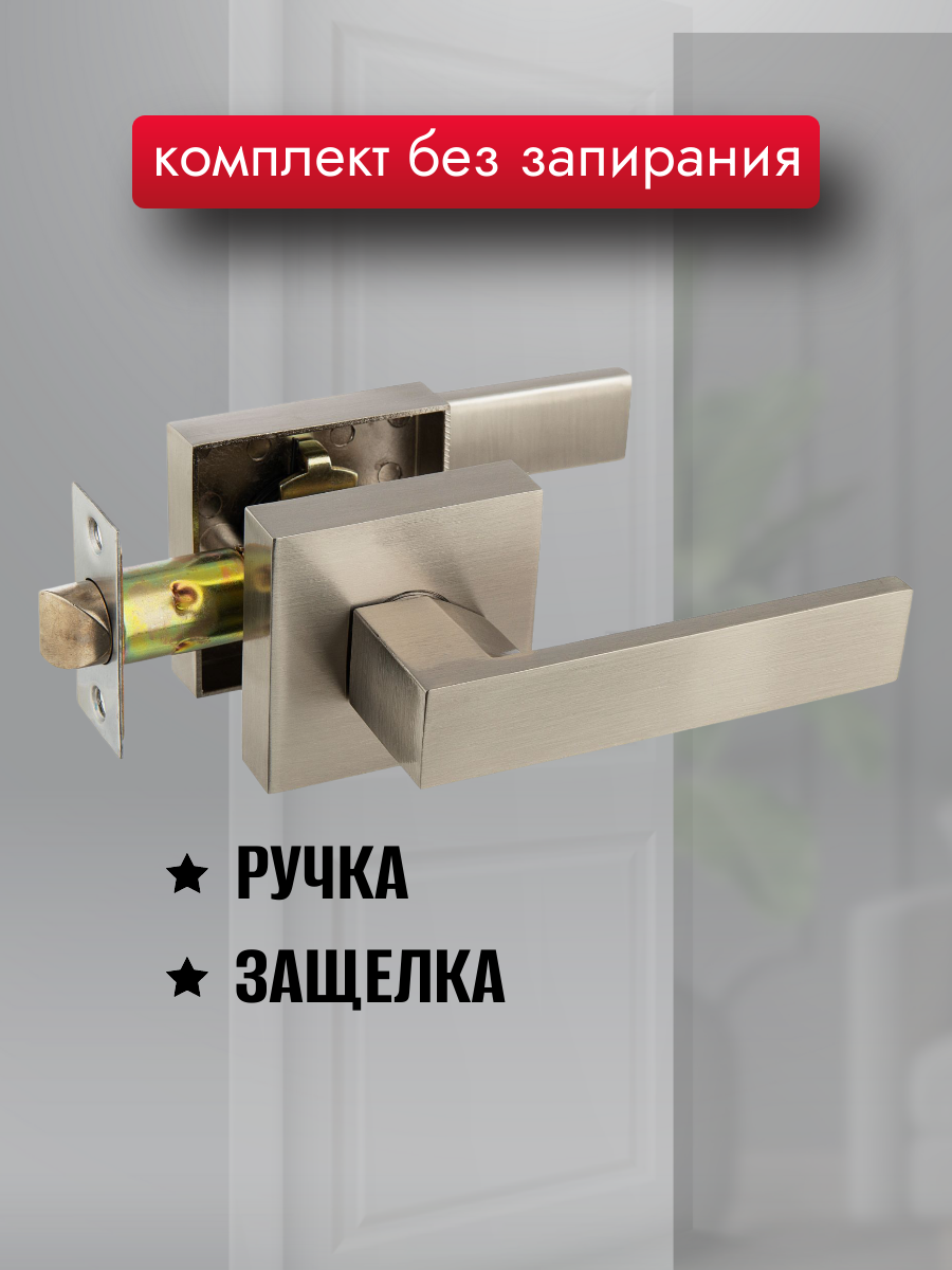Отзывы на Ручка дверная межкомнатная с защелкой, цвет под никель, квадратная розетка, комплект
