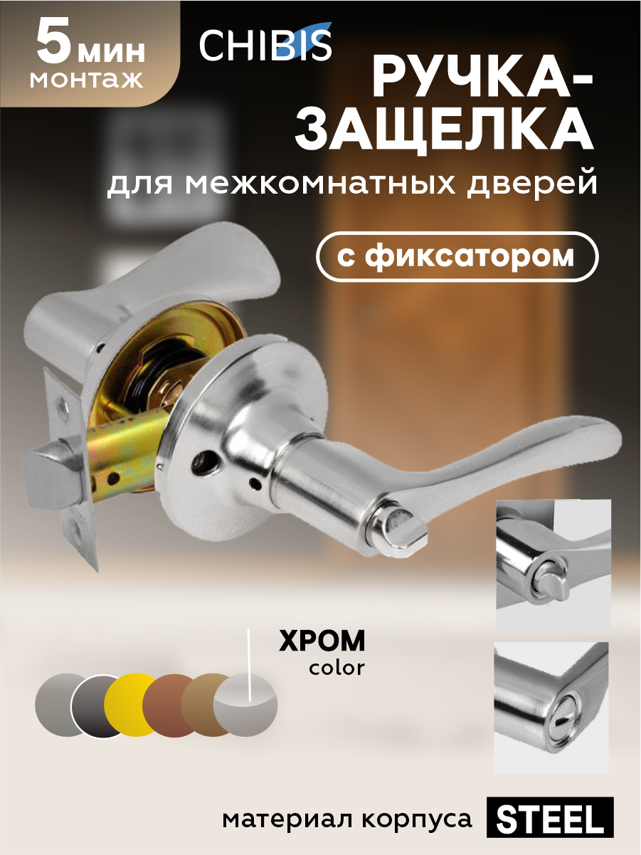 Ручка-защелка для межкомнатных дверей "Чибис" фалевая (хром) с фиксатором информация: