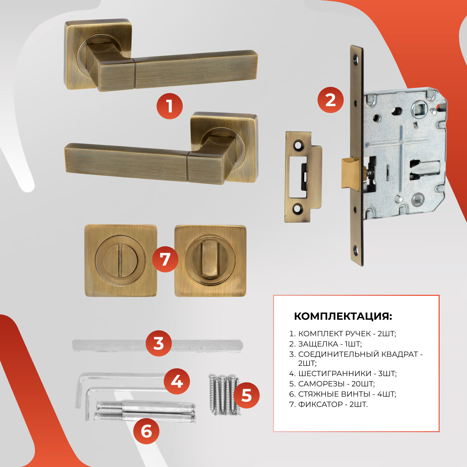 10 цен на Ручка дверная VETTORE R06.081 AB с фиксатором BK 0605 AB и межкомнатным механизмом WC 170 kevlar AB (Бронза)
