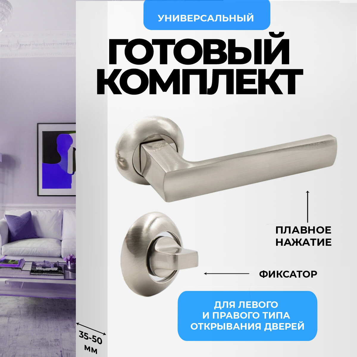 10 цен на Ручка дверная межкомнатная, поворотная, нажимная Loid 250 SN + завертка круглая SN/CP матовый хром