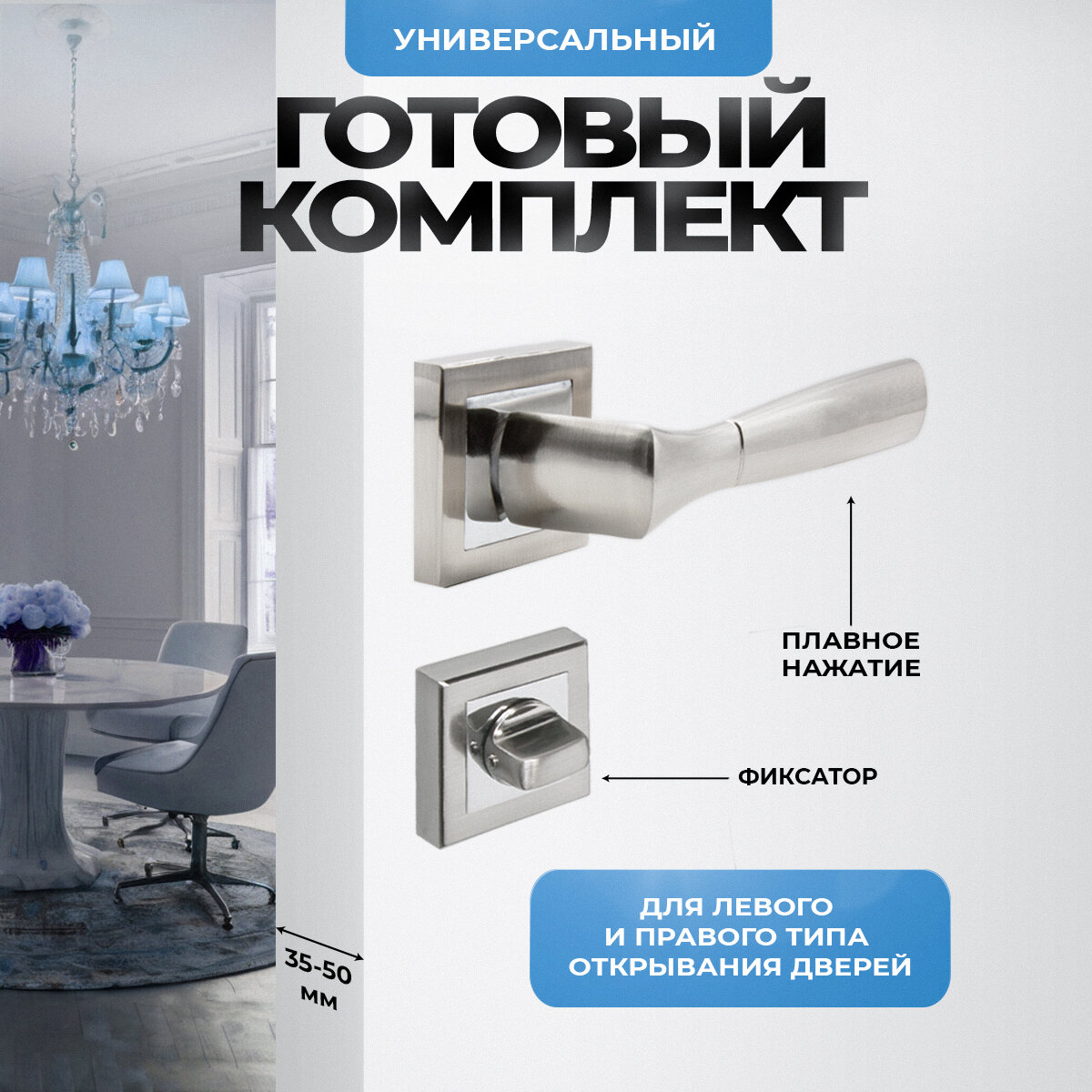 10 цен на Ручка дверная межкомнатная, поворотная, нажимная Loid 470 SN/CP + завертка квадратная SN/CP матовый хром/хром