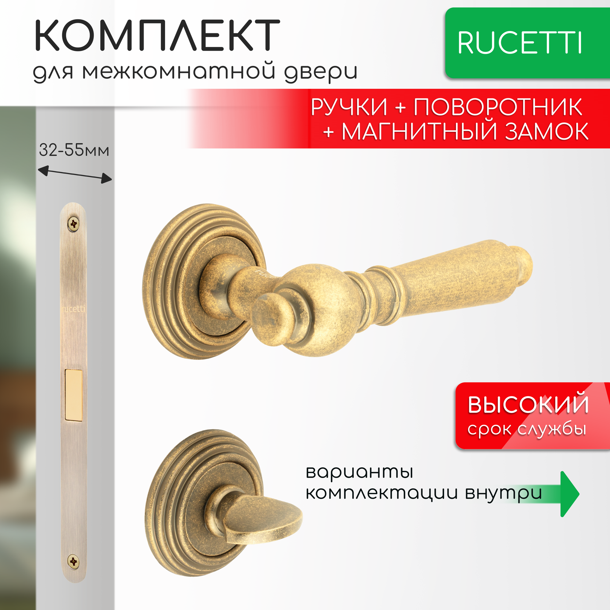 Комплект для межкомнатной двери Rucetti ручки RAP Cl 8 OMB + фиксатор + магнитный замок / старая матовая бронза информация: