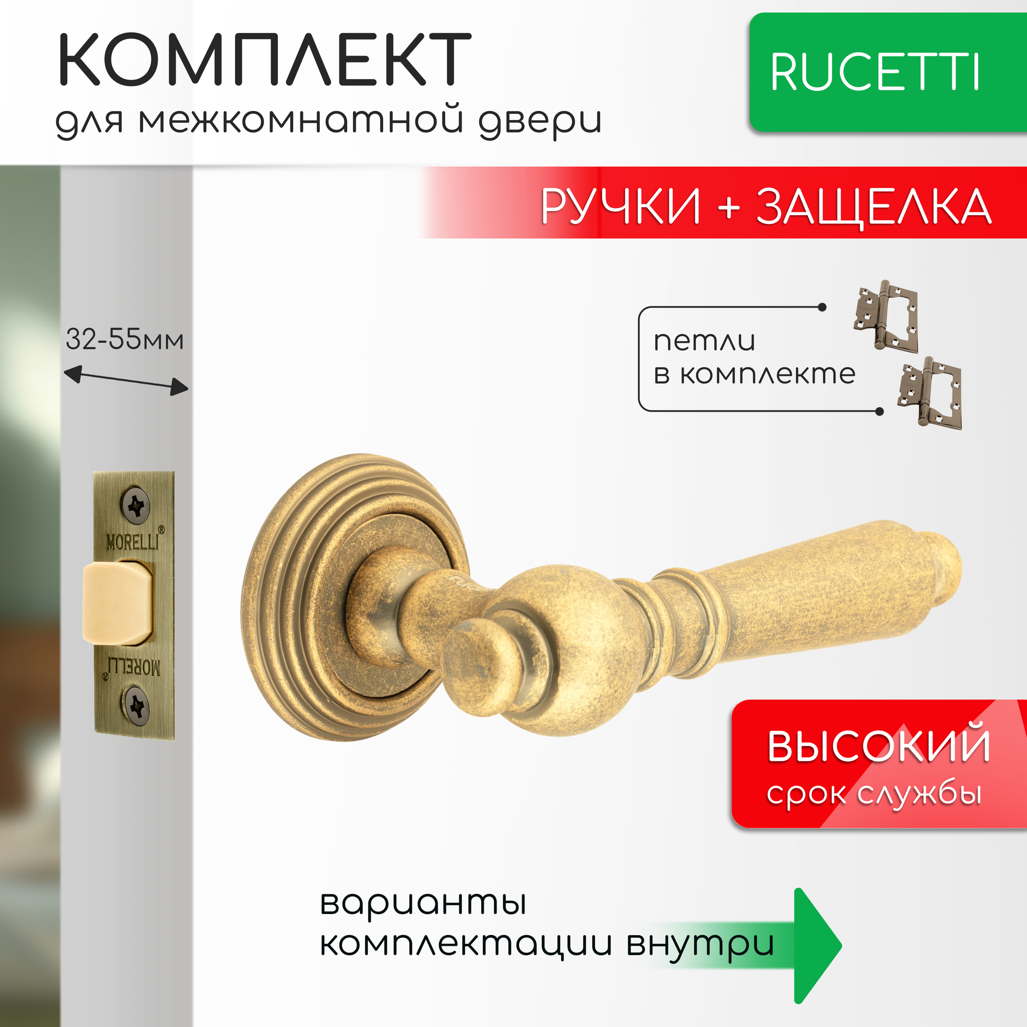 Отзывы на Комплект для межкомнатной двери Rucetti ручки RAP Cl 8 OMB + межкомнатная защелка + петли бабочки /старая матовая бронза