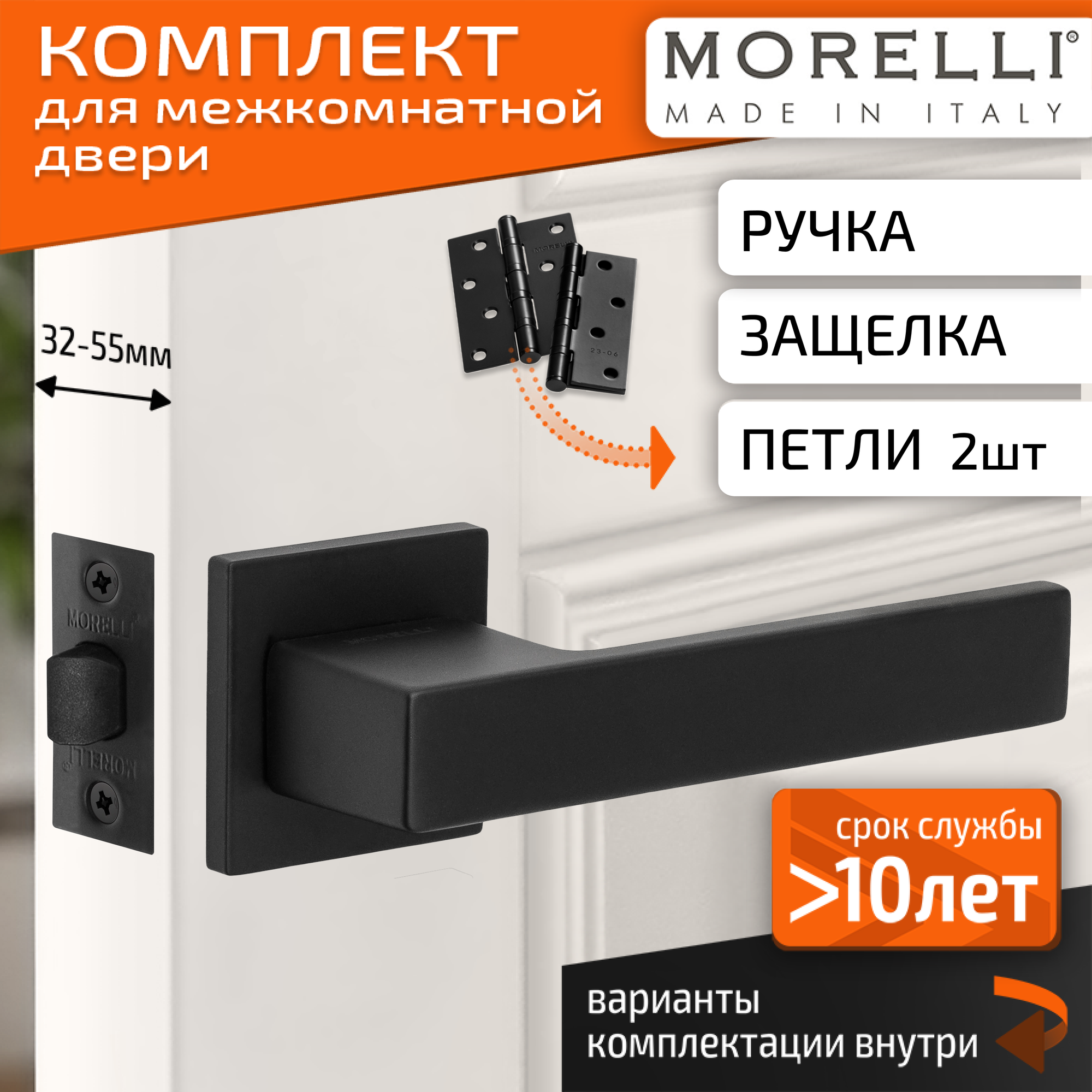 10 цен на Комплект для межкомнатной двери Morelli / Дверная ручка MH 56 S6 BL + межкомнатная защелка + врезные петли / черный матовый