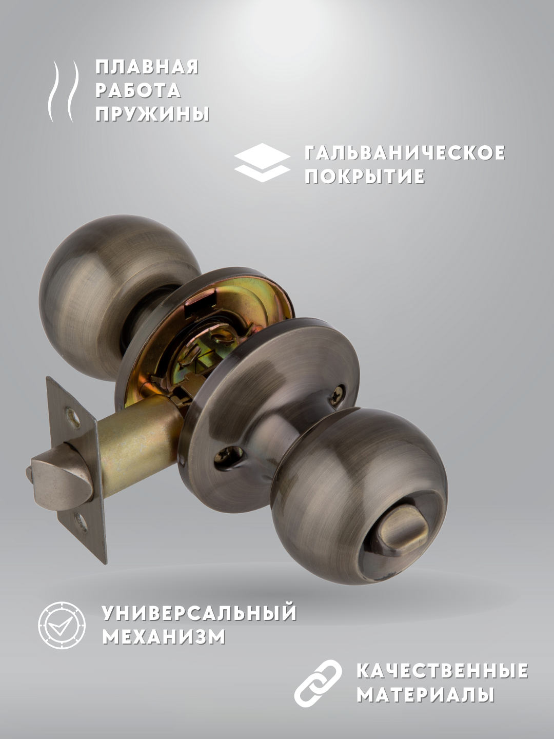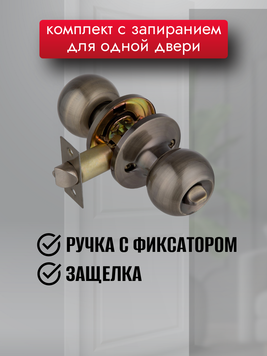 Отзывы на Ручка дверная межкомнатная кноб с защелкой, фиксатор без ключей , бронза, комплект 607 AB BK