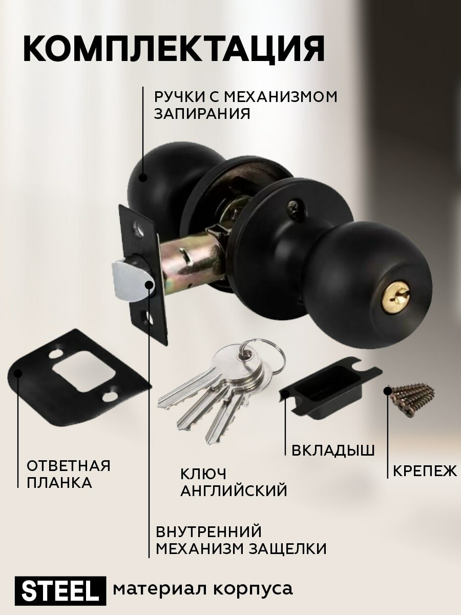 Защелка дверная `чибис` 3067 BL-ЕТ шарик (черный) ключ/фиксатор информация: