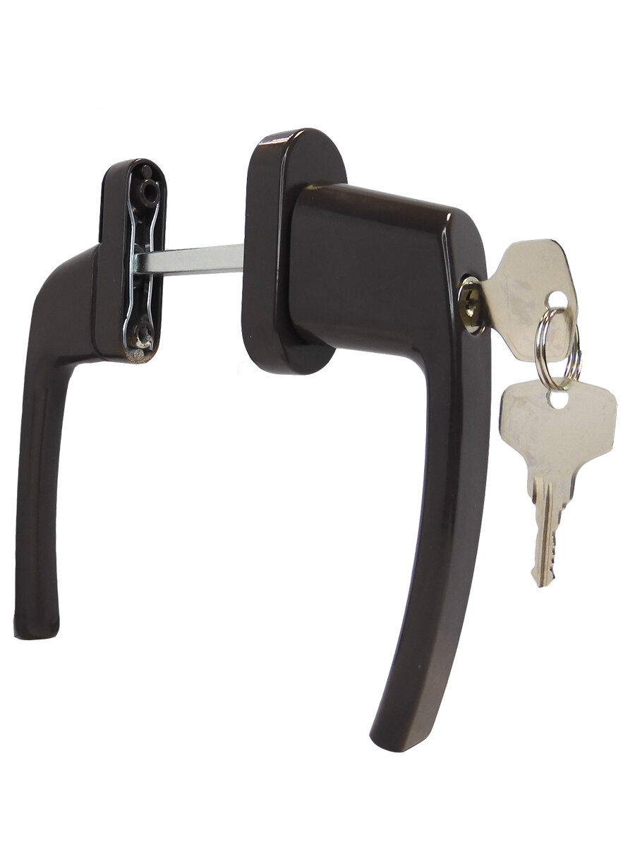 10 цен на Гарнитур балконный с узкой ручкой и замком для ПВХ дверей 68-75 мм, коричневый