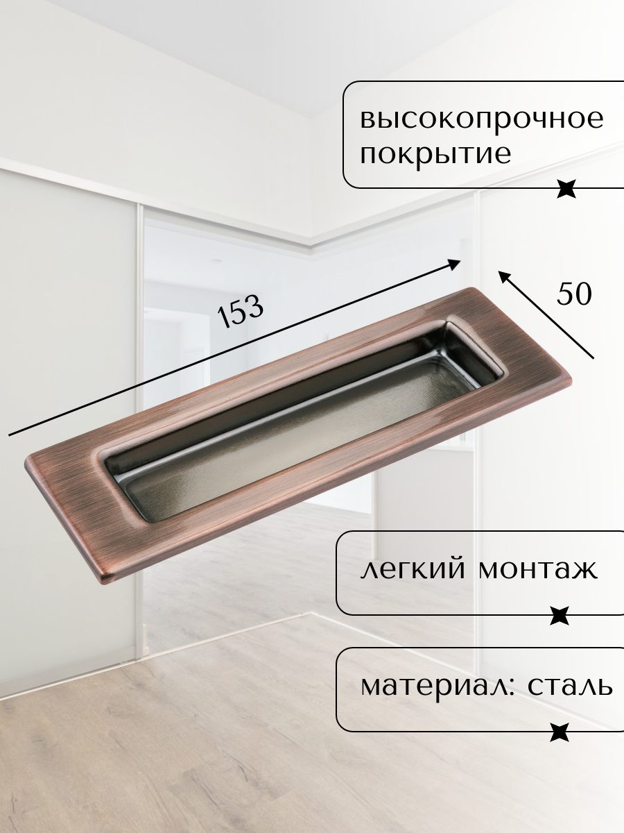 Ручки мебельные для раздвижных дверей прямоугольные под медь информация: