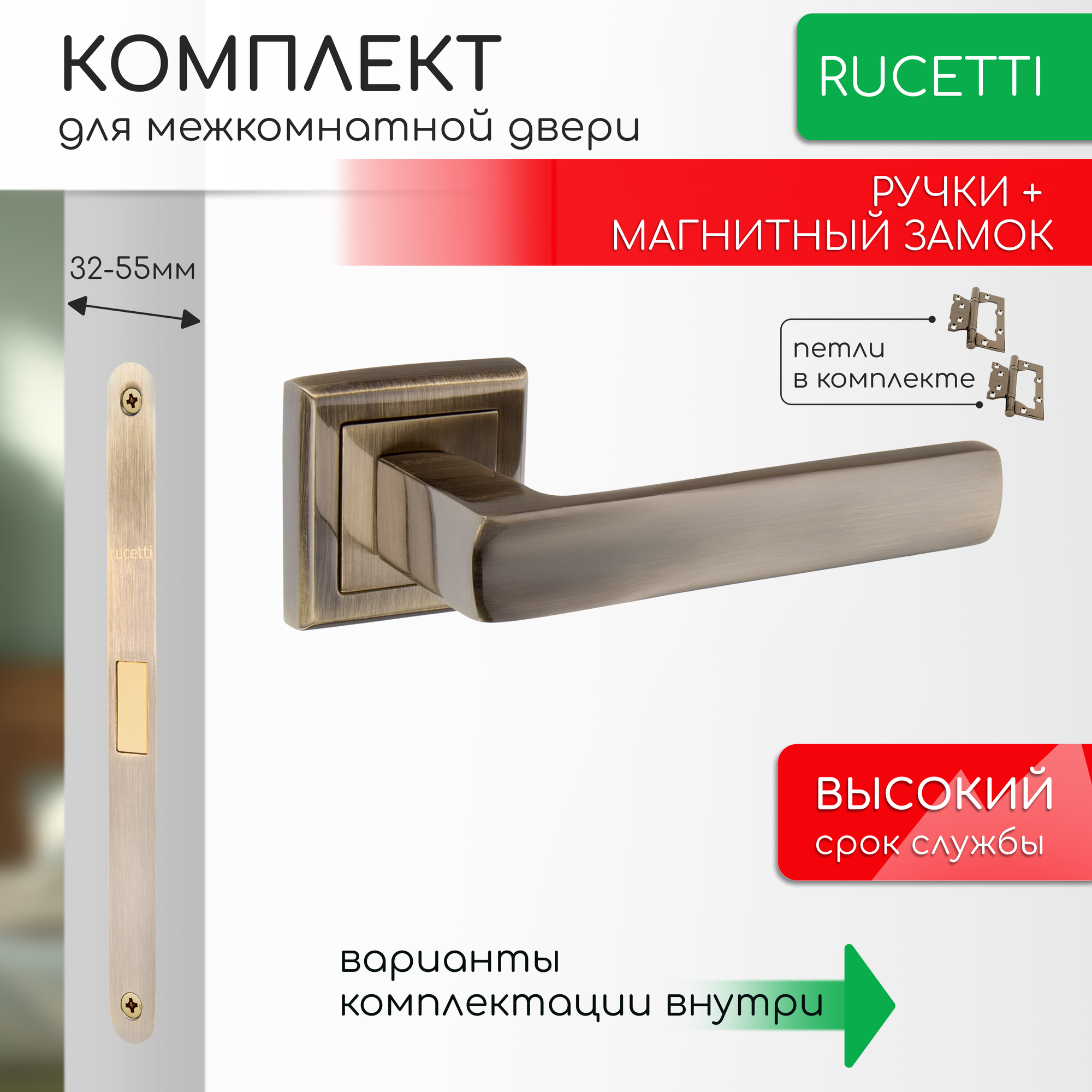 Комплект для межкомнатной двери Rucetti ручки RAP 14 S AB + магнитный замок + петли бабочки / античная бронза информация: