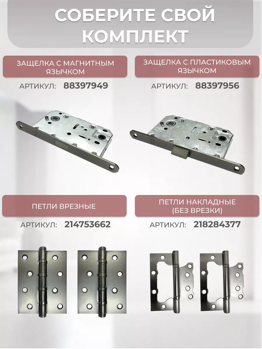 Ручка дверная Rucetti (Ручетти) RAP 9 AB + Защелка RP1895 AB + Дверные петли бабочки RFH-100*75*2,5 AB- 2 шт.