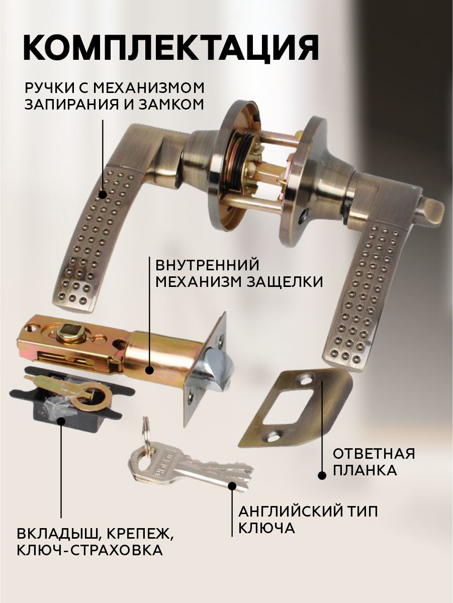 Отзывы на Дверная ручка с защелкой для межкомнатных дверей, универсальная "Чибис" фалевая, с замком и фиксатором (бронза)