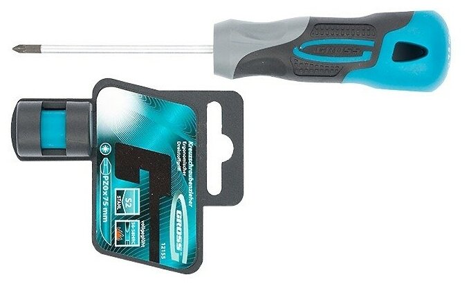 Отвертка PZ0 x 75 мм, S2, трехкомпонентная ручка// Gross 12155 . информация:
