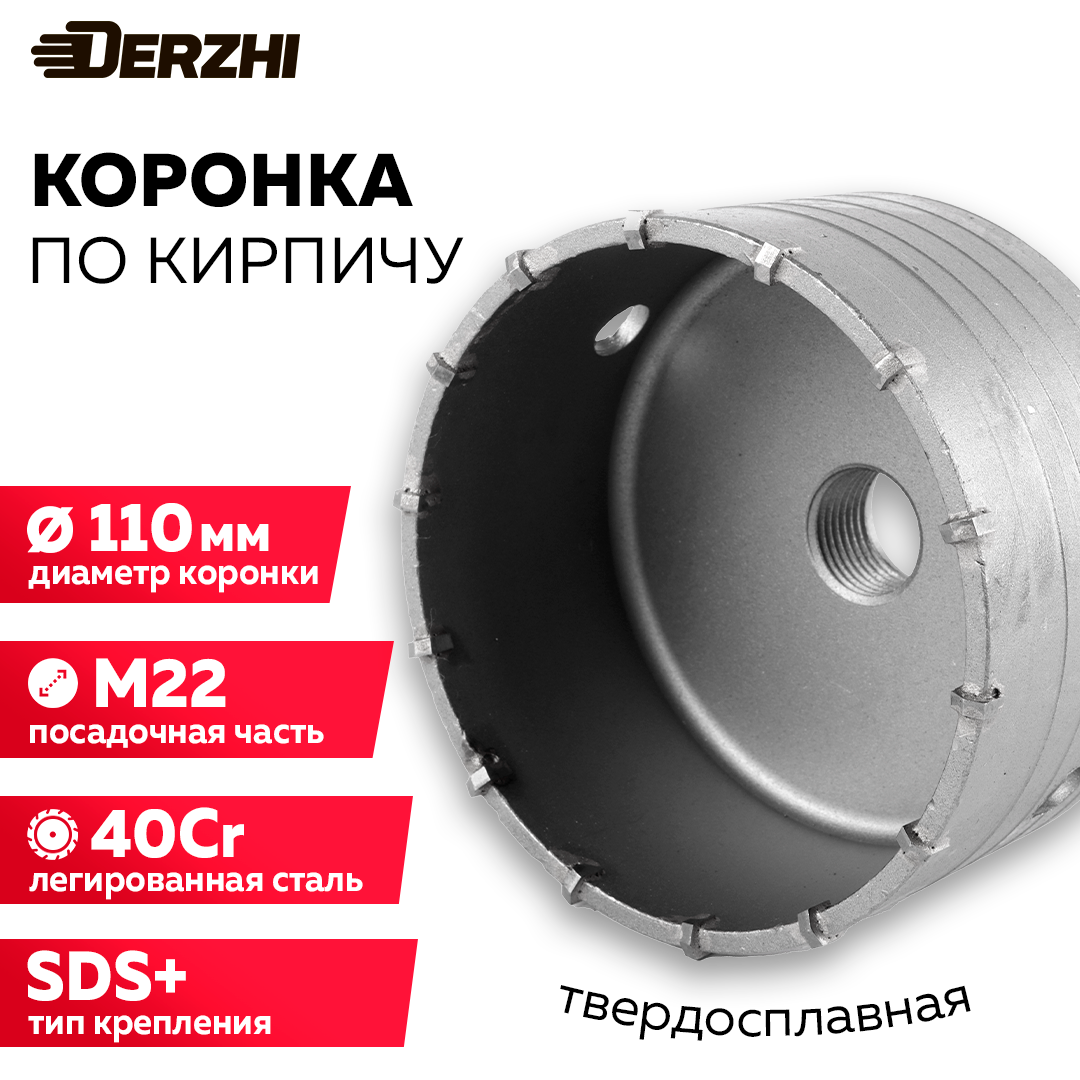 Коронка по кирпичу, камню, бетону для перфоратора, 110 мм, М22, DERZHI информация:
