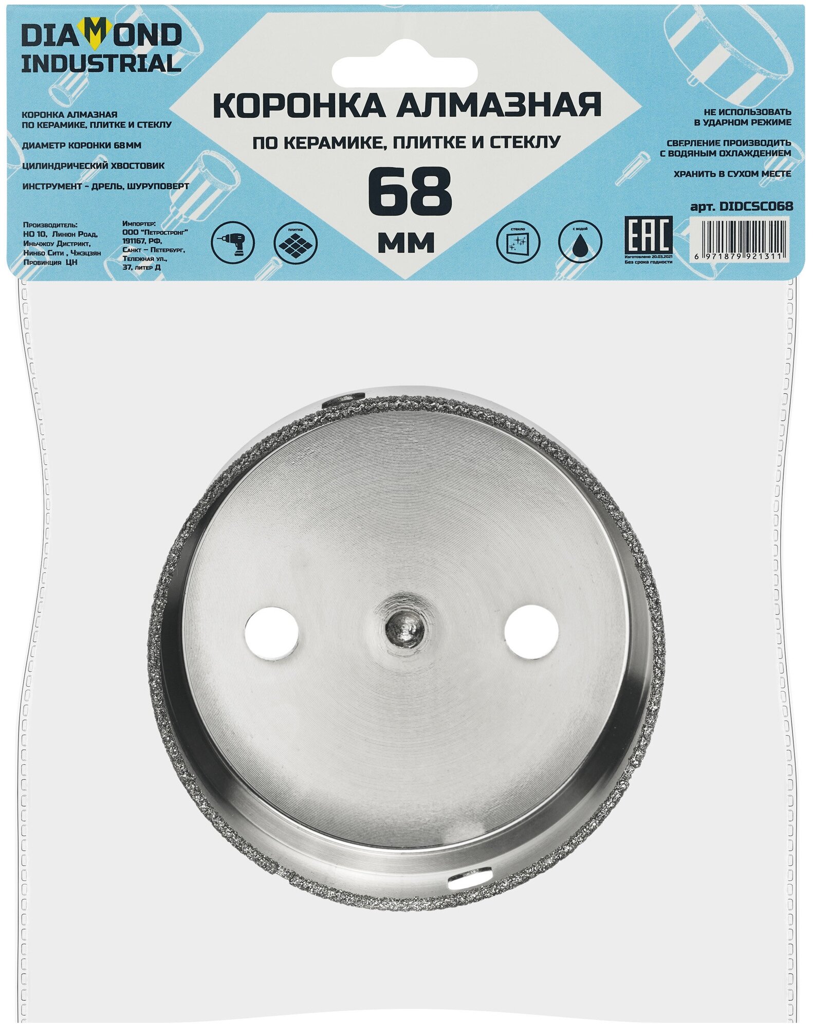 Алмазная коронка по керамике, плитке и стеклу 68 мм Diamond Industrial информация: