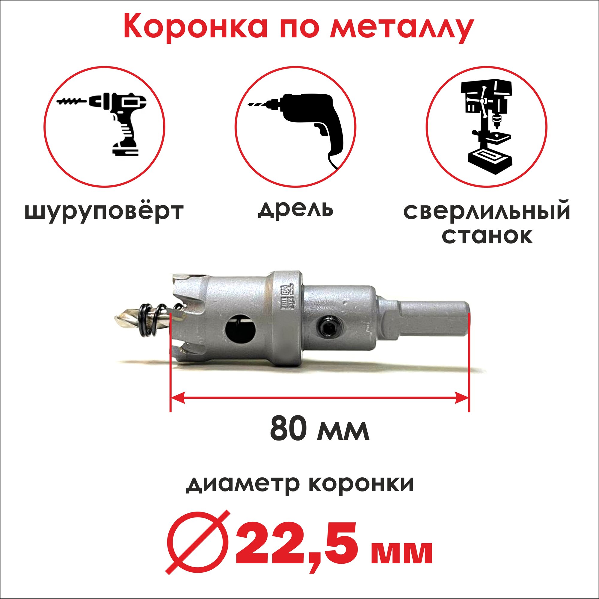 Коронка твердосплавная по металлу 22,5х80 мм, бур/ сверло для резки металла информация:
