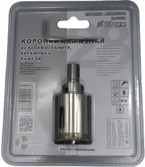 Коронка алмазная по керамике и кафелю с центрирующим сверлом 28мм 400028 информация: