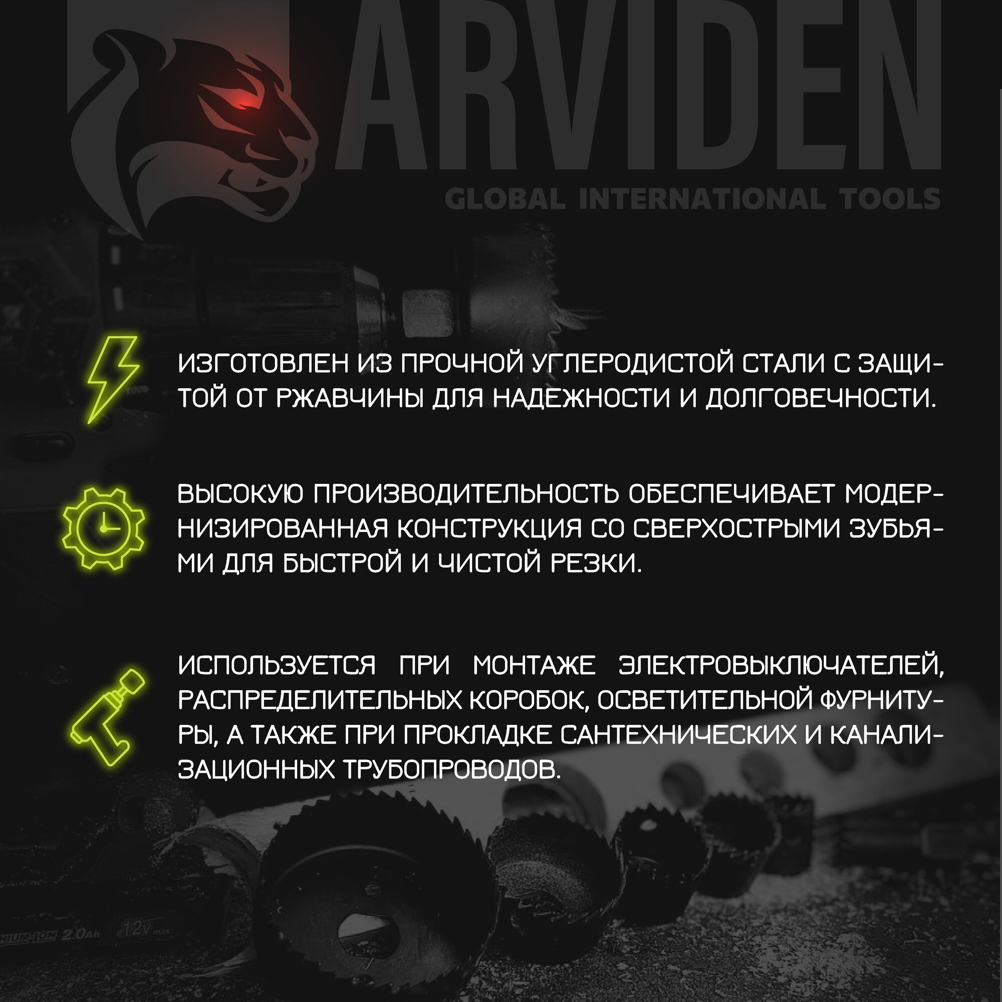 10 цен на Набор коронок ( кольцевых пил ) по дереву 64-127 мм 5 пил 8 предметов ARVIDEN