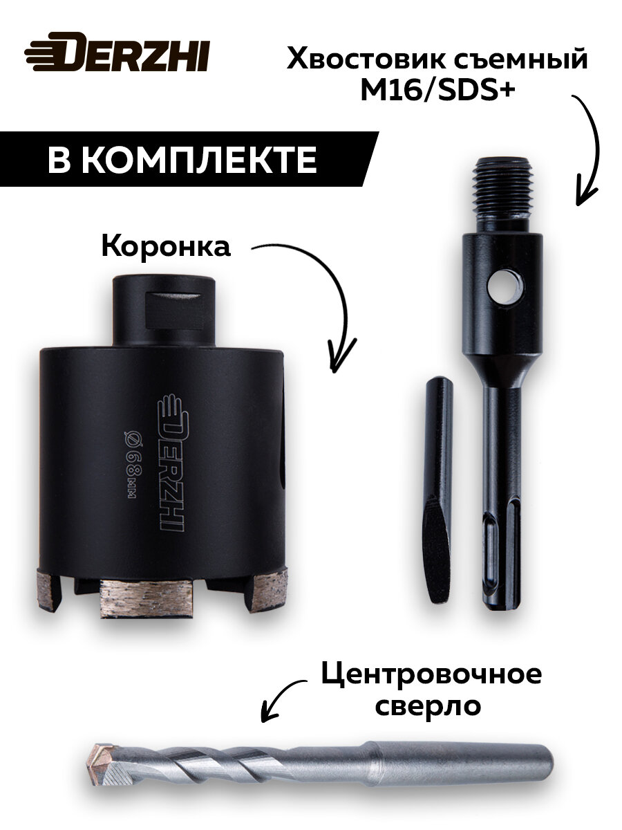 10 цен на Коронка алмазная по бетону 68*70мм, М16, 5 турбо сегмента, ВЧ сварка, с хвостовиком Derzhi