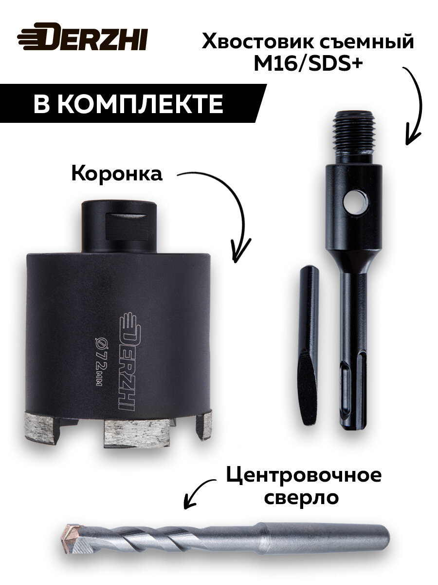 Отзывы на Коронка алмазная по бетону 72*70мм, М16, 5 турбо сегмента, ВЧ сварка, с хвостовиком Derzhi