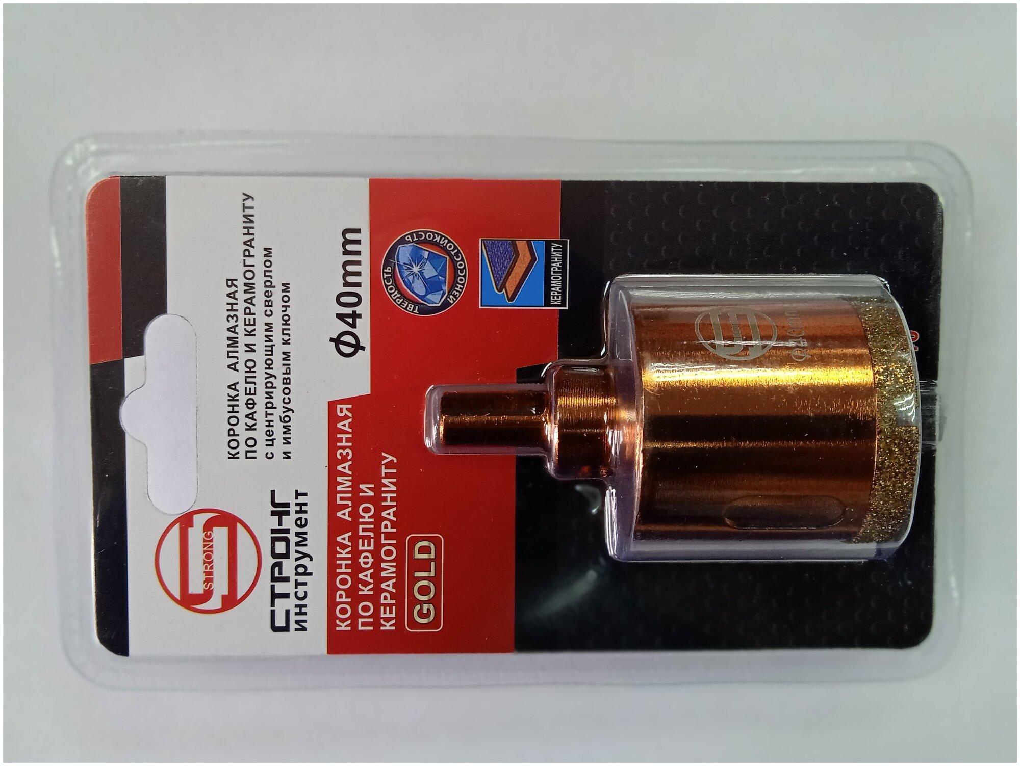 Коронка алмазная по кафелю ø 45 мм и керамике GOLD c центрирующим сверлом стронг ø 45 мм СТК-06700045
