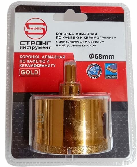 Отзывы на Коронка алмазная по кафелю ø 68 мм и керамике GOLD c центрирующим сверлом стронг ø 68 мм СТК-06700068