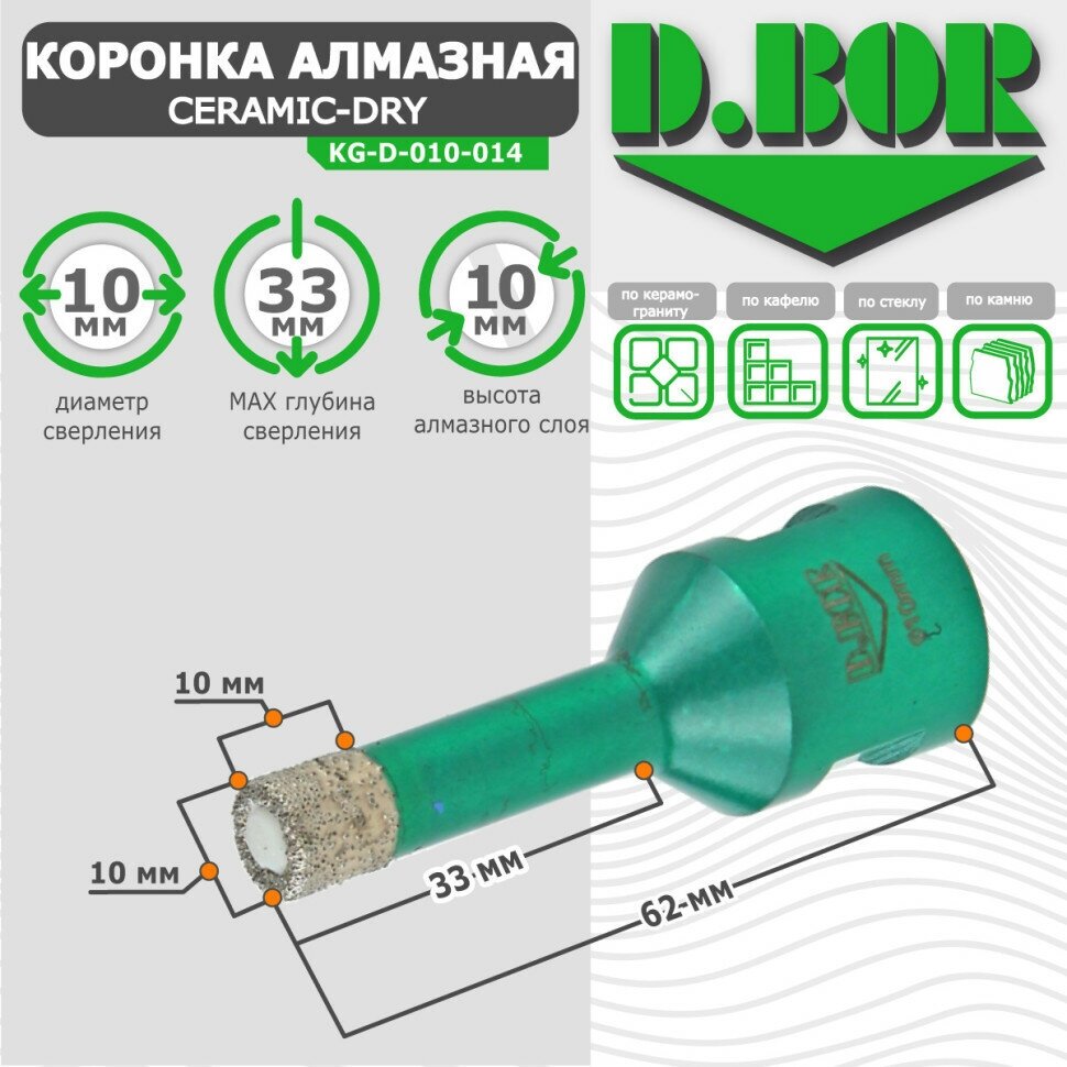 Коронка алмазная по керамограниту D.BOR Keramogranit-Dry 10x62 мм (арт. D-KG-D-010-014) информация: