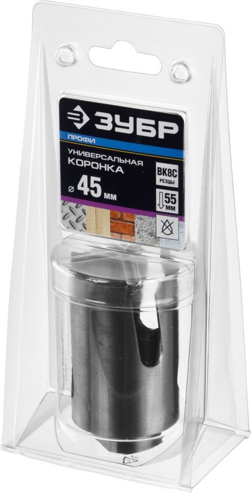 ЗУБР Коронка ЗУБР "профи" "проуниверсал", твердосплав резцы, бетон, кирпич, керам, цв мет, гипсокарт, пласт, дерево, d=45мм , ( 29514-45 ) информация: