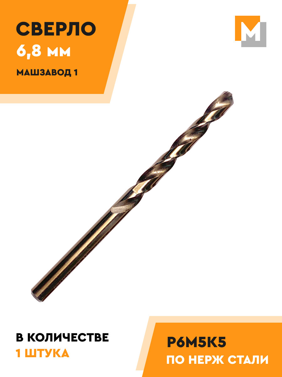 Сверло по металлу 6,8 мм Р6М5К5 кобальтовое машзавод 1 информация: