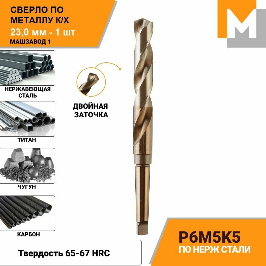 Сверло по металлу 23 мм КМ2 Р6М5К5 кобальтовое машзавод 1 информация: