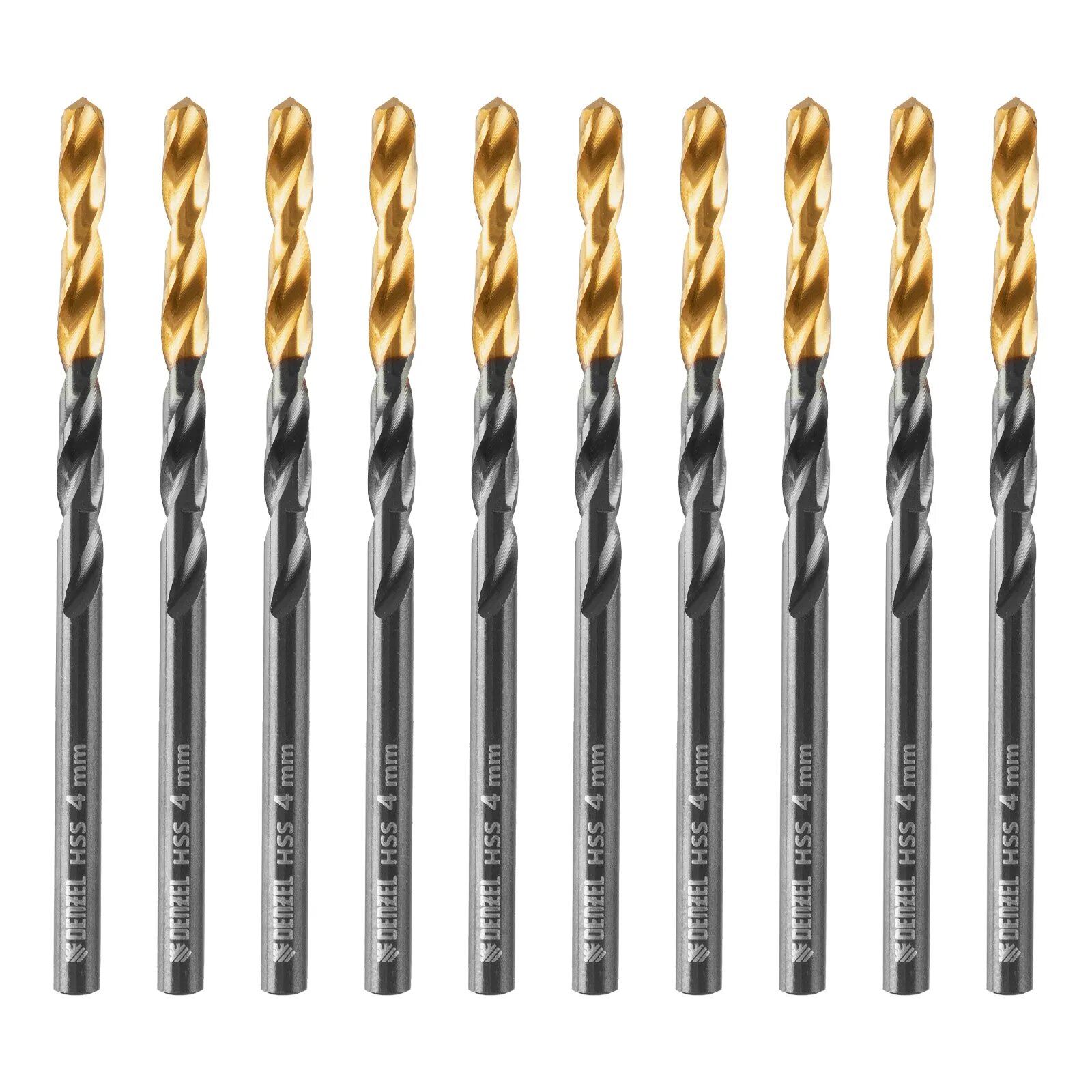 10 цен на Сверло по металлу Denzel Golden Tip, 4 мм, 10 шn, цил. хвостовик, сталь HSS-Tin, пониженный коэффициент трения, 717209