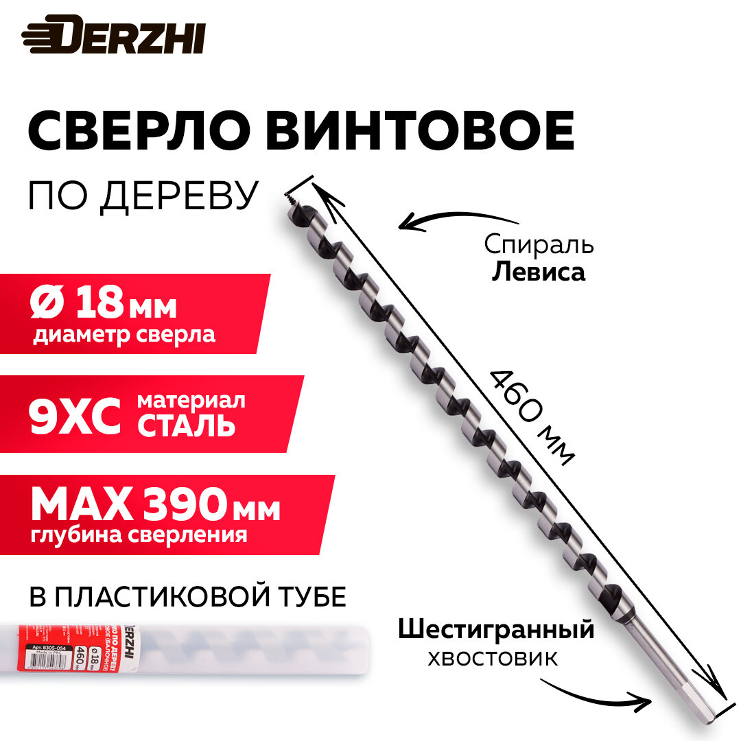 Сверло по дереву винтовое с шестигранным хвостовиком в тубе, 18х460 мм DERZHI информация: