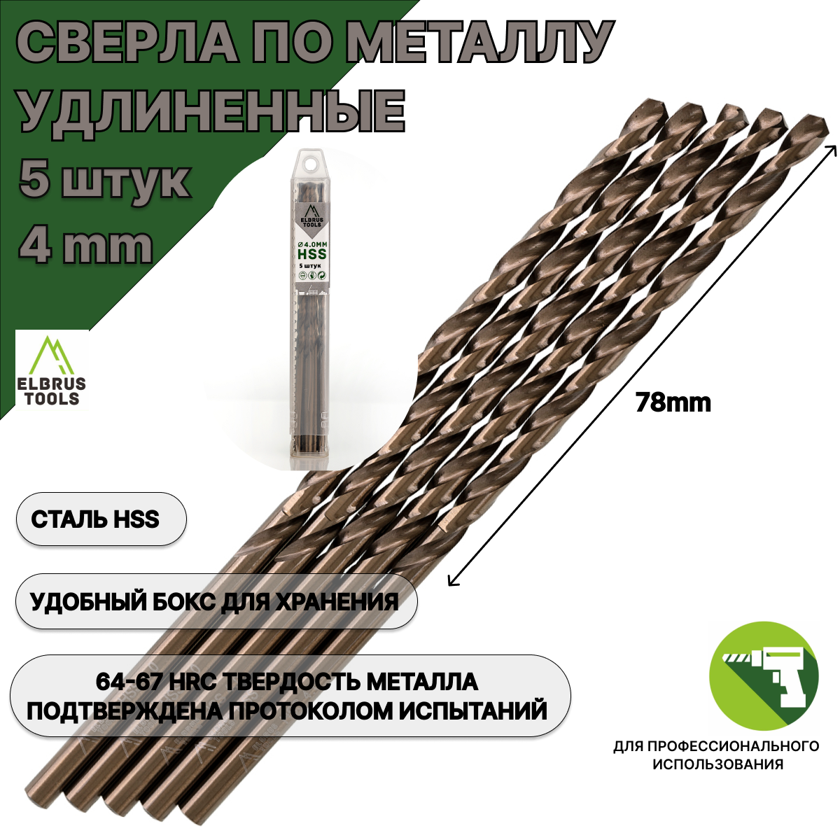 10 цен на Сверла по металлу удлиненные 4 мм - 5 шт Сталь Р4М3 DIN340
